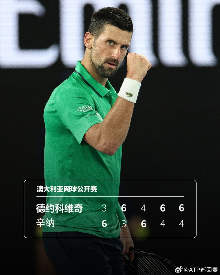 冲击第25座大满贯!德约3-2战胜辛纳进澳网男单决赛,将战阿卡