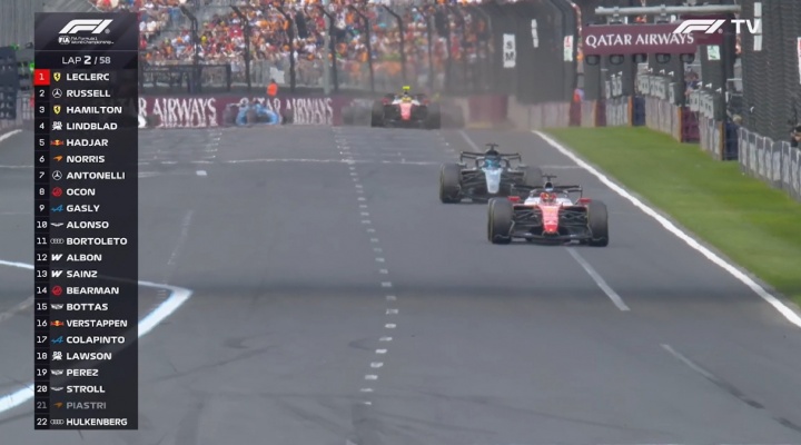 五站红灯燃烧,两台奔腾的起步王人没有是很抱负,勒克莱尔间接上到了第一的地位,他的队好友汉密尔顿则是从第七超到了第二,而第二位发车的安东内乱利失到了第七↓