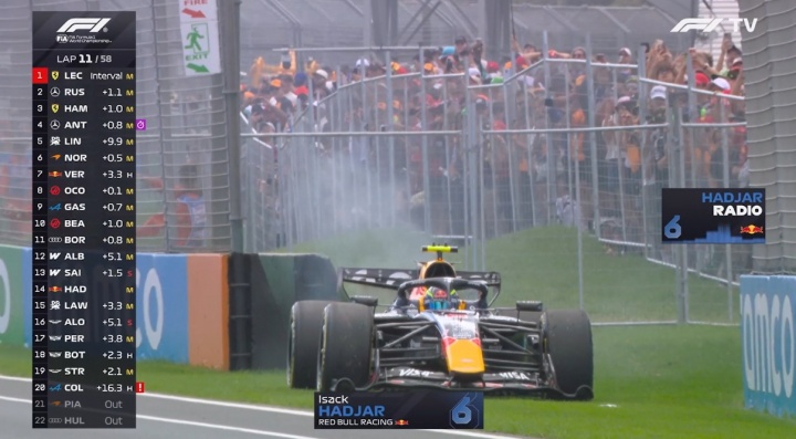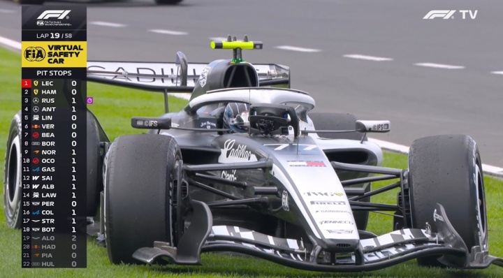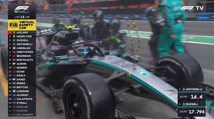 第11圈,哈贾尔的赛车停到了赛讲读旁!触发虚构宁静车,多名车手挑选进站↓