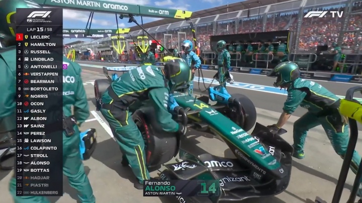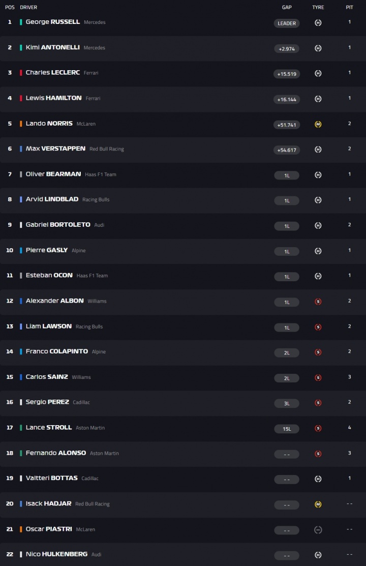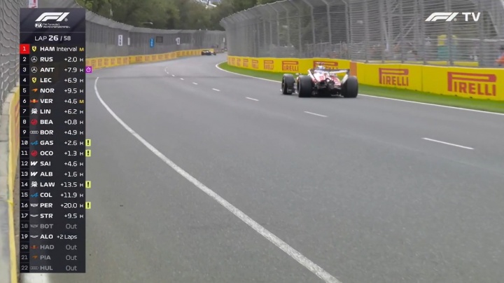 第25圈,勒克莱尔进站,出站后地位失到第4,汉密尔顿留在场上领跑↓