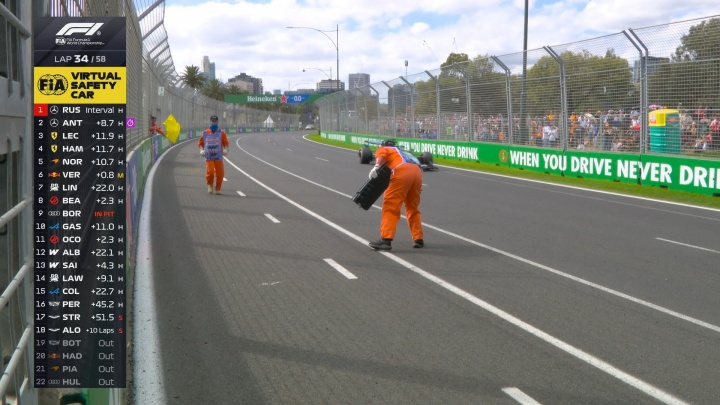 第34圈,佩雷兹赛车的碎屑飞到赛讲读上,长久触发虚构宁静车↓