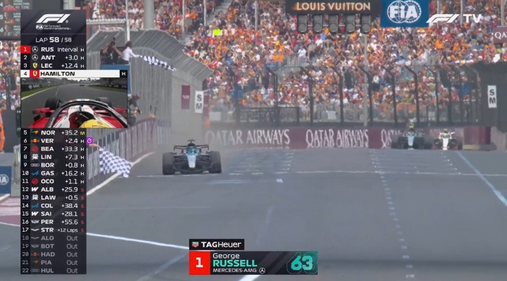 终极,拉塞尔首先冲过起点线,获得赛季户口门红↓