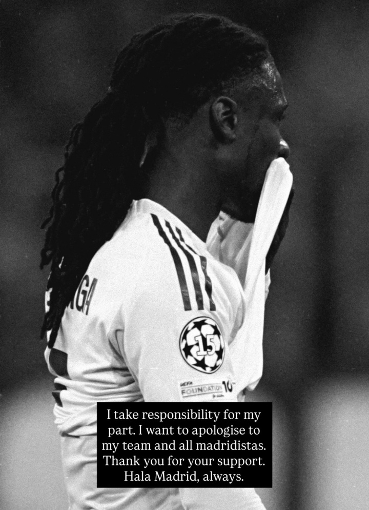 卡马文加:“我为本身的错误承当所有义务。Hala Madrid,永久!”