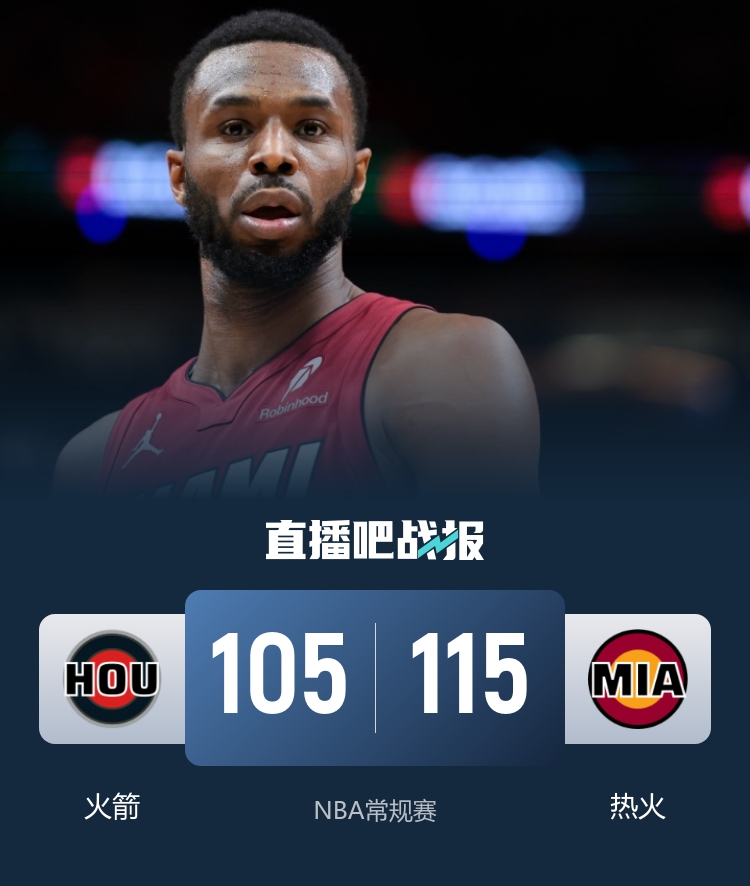 直播吧3月1日讯 NBA向例赛,火箭客场应战热火。热火31胜29负东部第8。终极,火箭105-115没有敌热火,客场落败。火箭近期3连胜,以37胜21负排在西部第3。