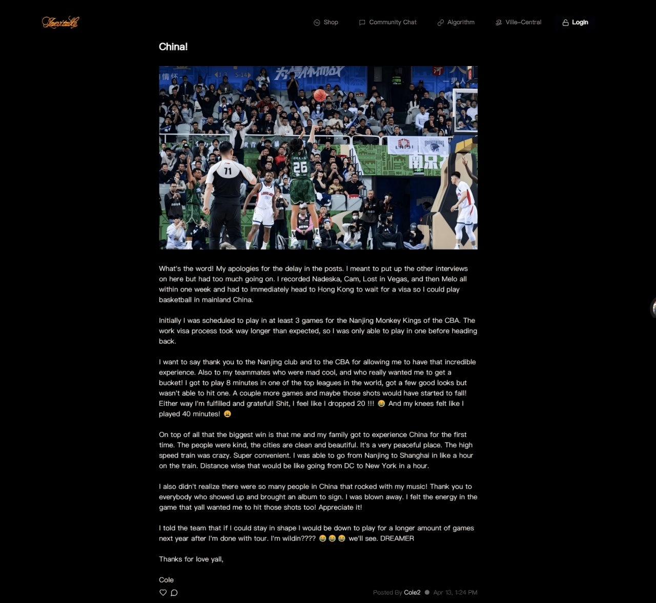 J.Cole小我私家博客:因签证跟任务出席后续角逐 谢谢人人&等待再见