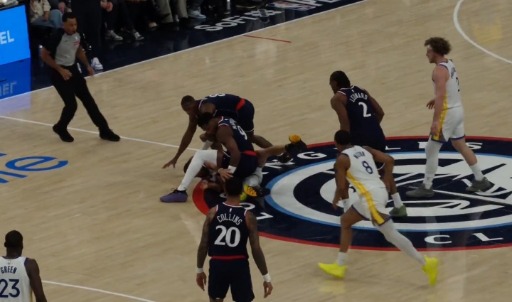 马瑟林坐在库里身上抢球招致库里错误 库里起家后只点了颔首
