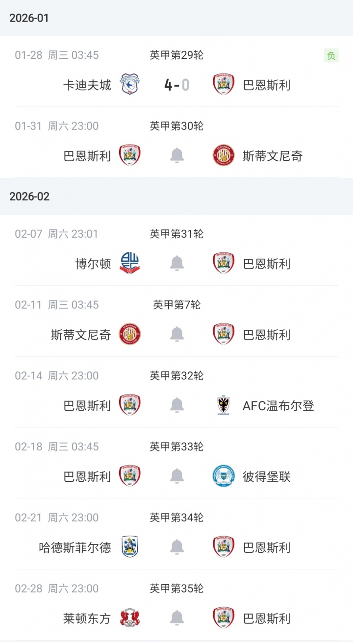 巴恩斯利赛程↓