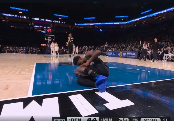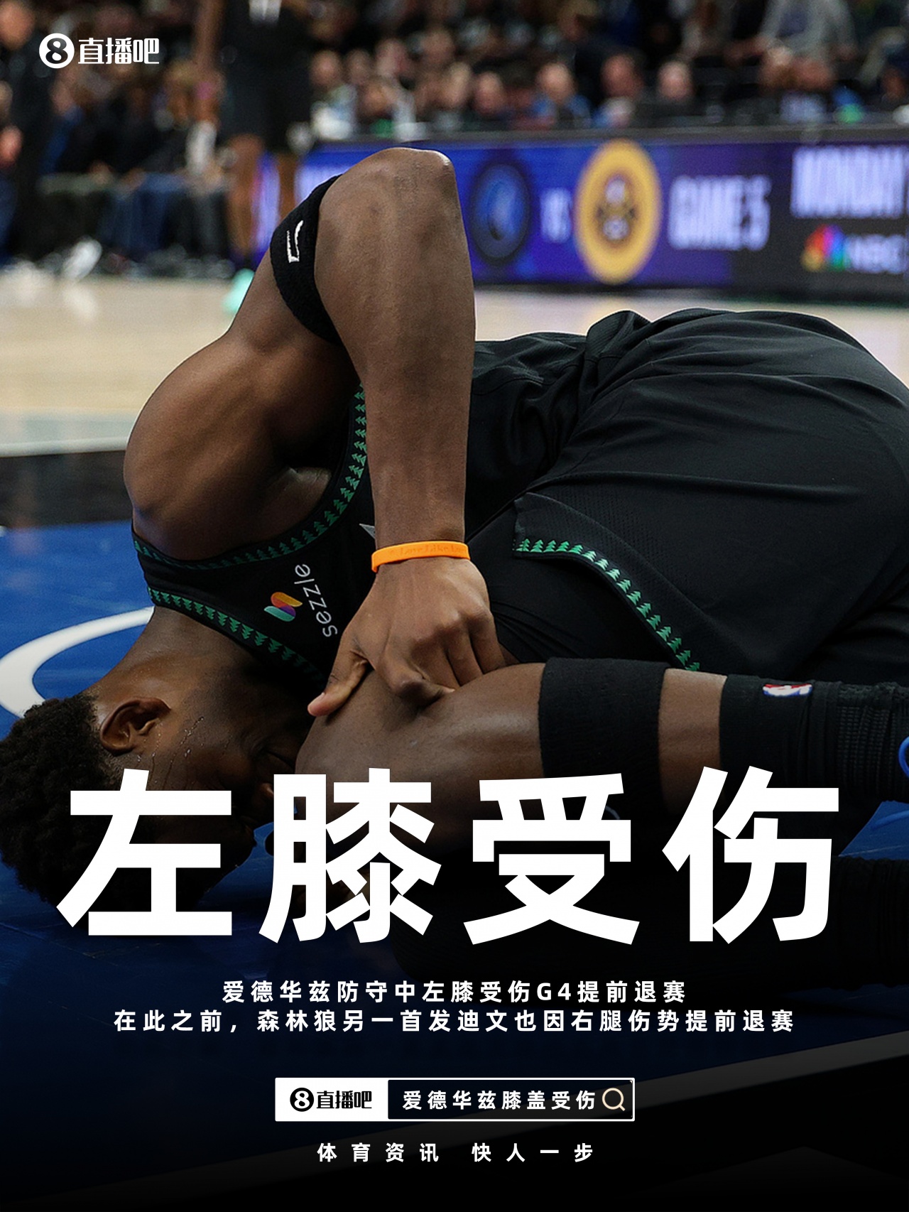 直播吧04月26日讯 丛林狼与掘金的G4第二节,爱德华兹在一次防卫中受伤。