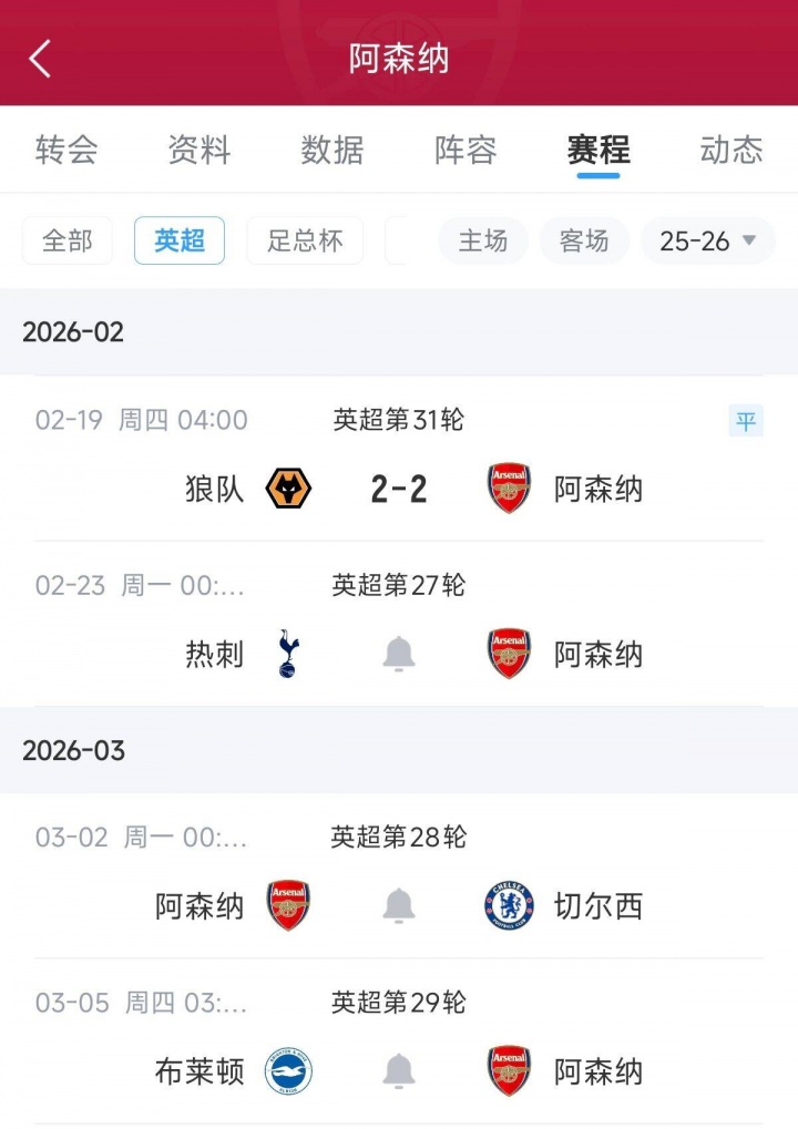 状况欠安的同期,阿森纳还将迎来恶战。接上去,枪手将客战热刺,主战切尔西,客战布莱顿……
