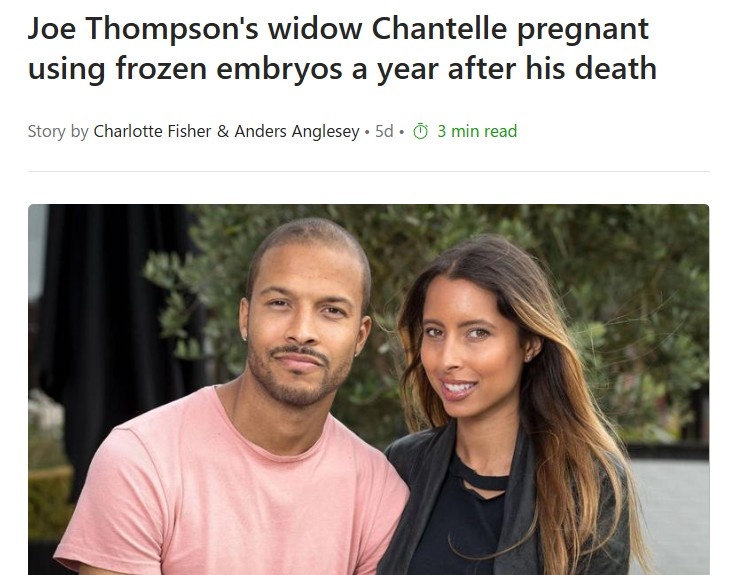 外媒:已故前曼联青训球员汤普森的遗孀,哄骗冷冻胚胎胜利有身