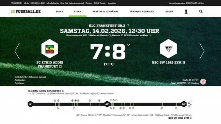 直播吧2月23日讯 德媒fussball报讲读,在德国专业饱读球法兰克福C1级联赛的一场向例赛中,法兰克福彩色1919二队客场应战亚的斯亚贝巴二队,告竣了一场饱读以载入专业饱读球历史的惊天逆转,法兰克福彩色1919二队演出7球年夜逆转的好戏。亚的斯亚贝巴二队的阿比、塞富、海勒跟戈伊托姆陆续发威,此中海勒在短短9分钟内乱演出帽子把戏,招致彩色二队半场停止时以1-7落伍。
