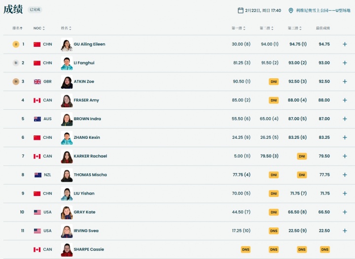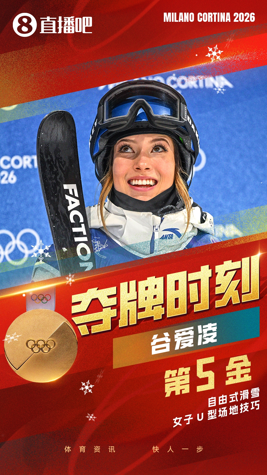 第5金!谷爱凌卫冕自在式滑雪男子U型园地技术金牌,李方慧摘银 作者:李文信发布时间:2026-02-22 20:54:59阅读量:625714 这回答很小卡!伦纳德谈全明星新赛制:怎么样都行 我都支持 第5金!谷爱凌卫冕自在式滑雪男子U型园地技术金牌,李方慧摘银 直播吧02月22日讯 米兰冬奥会自在式滑雪男子U型园地技术决赛,华夏选手李方慧、谷爱凌、张可欣、刘奕杉出战。 张可欣第3滑83.25分最高,名次第6;刘奕杉第3滑71.75分最高,名次第9。卫冕头筹谷爱凌第2滑、第3滑均贡献完善施展,终极凭仗第3轮94.75分的问题,夺得金牌!这是华夏队本届冬奥会的第五枚金牌。李方慧第3滑93.00分夺得银牌,英国选手阿特金失掉铜牌。第1轮问题戳>> 第2轮问题戳>> 相关标签本场梅开二度!赵松源:今天表现还可以,下一场继续努力【赛前海报】 亚冠精英联赛 第8轮 2月18日18时 上海海港vs蔚山HD传奇赛巴萨0-2皇马,世体关注小罗传奇赛表现:多次秀出踩单车每日电讯:罗伯逊是天生的更衣室领袖,热刺引进他可谓好处多多 上一篇哪里逃?伊森快攻闪出空间要上篮 弗拉格追分大帽直接扇飞下一篇美高顶级全明星赛事之一!张博源入选艾弗森经典赛世界队阵容 相关文章马卡:马德里市长向博斯克颁发基层体育贡献奖,表彰其体育贡献投得挺差劲!谢泼德半场6中1仅拿2分1篮板1助攻张佳玮:哈登11月撑局伦纳德近1个半月大爆炸 为啥俩都没进全明星瓜帅执教英格兰俱乐部最快达成400胜,曼城官方社媒晒海报祝贺加兰出战33分钟 16中8&三分5中2拿19分6板4助2断 出现5失误媒体人谈第二粒丢球:转换和二次转换的较量中,被对手打了个回头 文章点评未查询到任何数据! 欢迎发表评论◎欢迎参与讨论,请在这里发表您的看法、交流您的观点。验证码 提交评论