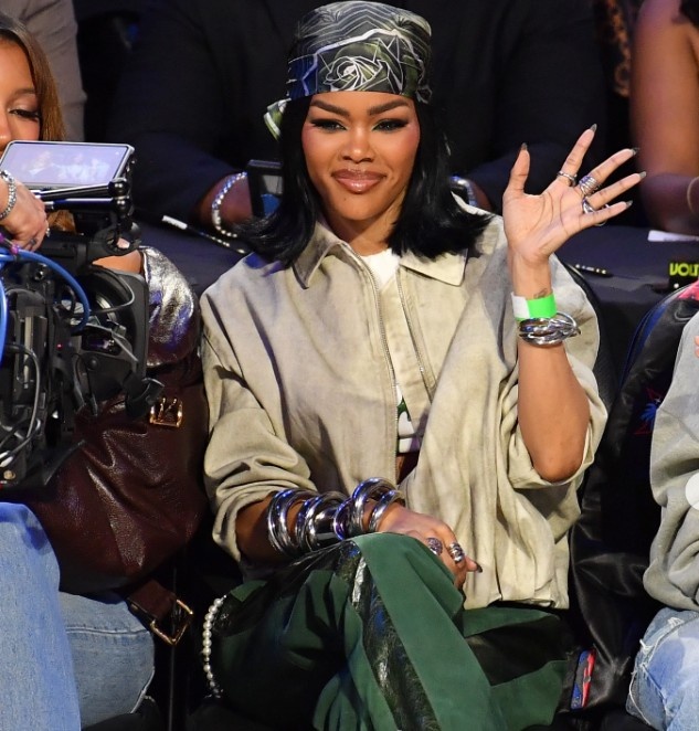 直播吧2月19日讯 以前的全明星赛正赛中,女子国伶人Teyana Taylor在场边不雅战,穿着鲜明靓丽