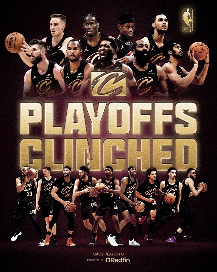 本场赢球之后,48胜29负的骑士锁定季后赛,提早5场锁定。