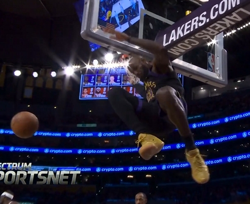 詹姆斯面对面出战首节4中4曾经爆砍14分 双手炸筐打停太阳
