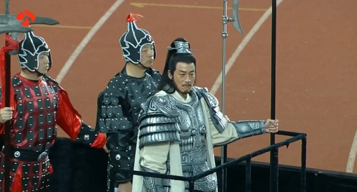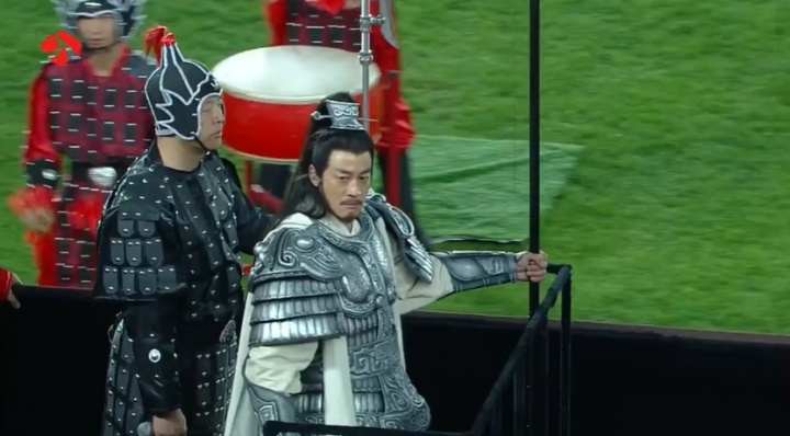 赛前暖场秀,伶人何润东以“项羽本羽”欣喜退场。何润东身披“霸王战甲”,乘现代战车、合手长戟绕场一周,重现“霸王回来”。直播吧04月18日讯 今晚19点40分,“苏超”宿迁队镇守宿迁奥体中央护卫南京队